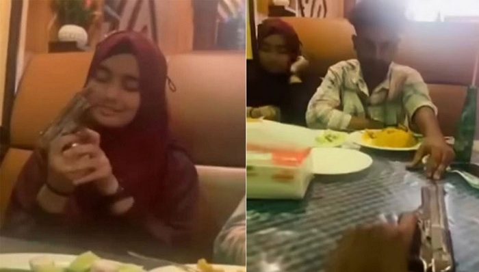 রেস্তোরাঁয় পিস্তল হাতে তরুণ-তরুণীর মশকরা, যা দেখা গেলো ভিডিওতে